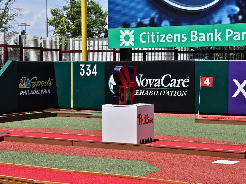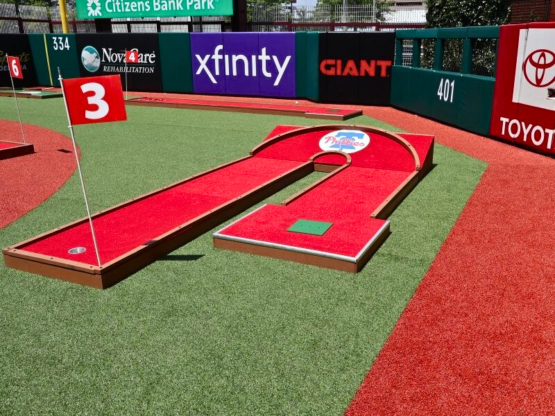 We were honored to be chosen once again by the Philadelphia Phillies for their 2025 Fan Experience in creating a custom 9 hole mini golf course rental for a lucky fan and his & her friends to play mini golf with two current Philadelphia Phillies players. The Phillies organization auctions off this experience to raise funds for location charities and it is done before a home game during the summer months.