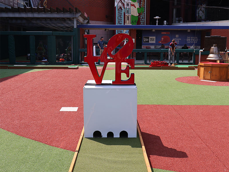 You can brand keepsake items such as golf balls, clubs, scorecards, and pencils that guests can take home as memorable souvenirs. In addition, we offer customization on the course obstacles and décor, including iconic features like The Windmill, The Toll Booth, bridge signage, and hole flags.