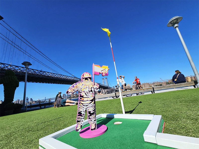 You can brand keepsake items such as golf balls, clubs, scorecards, and pencils that guests can take home as memorable souvenirs. In addition, we offer customization on the course obstacles and décor, including iconic features like The Windmill, The Toll Booth, bridge signage, and hole flags.