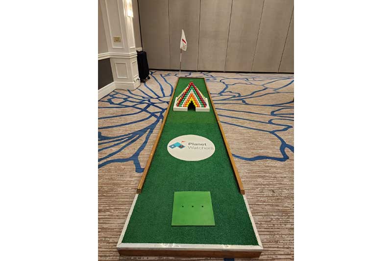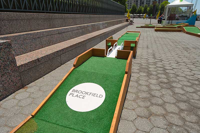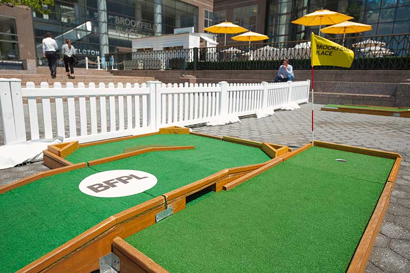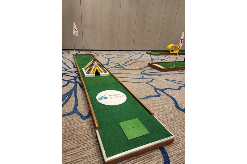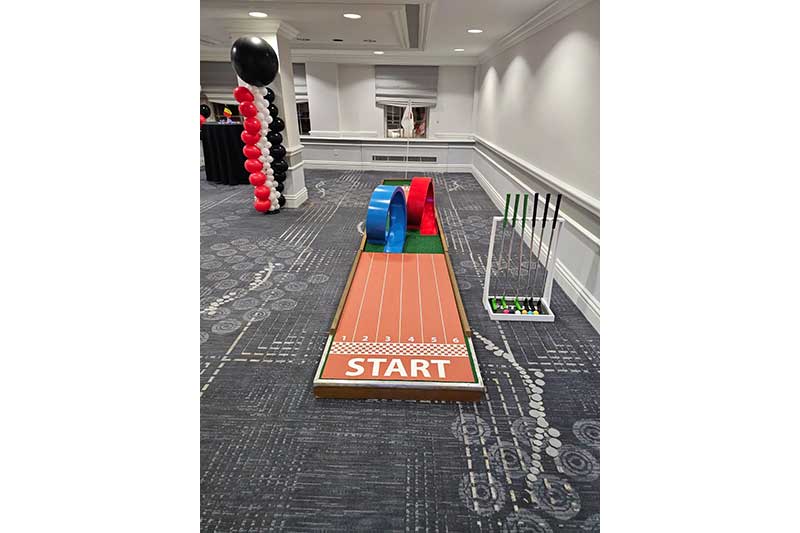 Besides Turf Logos, we also offer other branding options on the turf. For a Leadership Summit that had an Olympic Theme where we had to make each hole based on an Olympic sport, we created a running track as part of the branding of that specific hole.